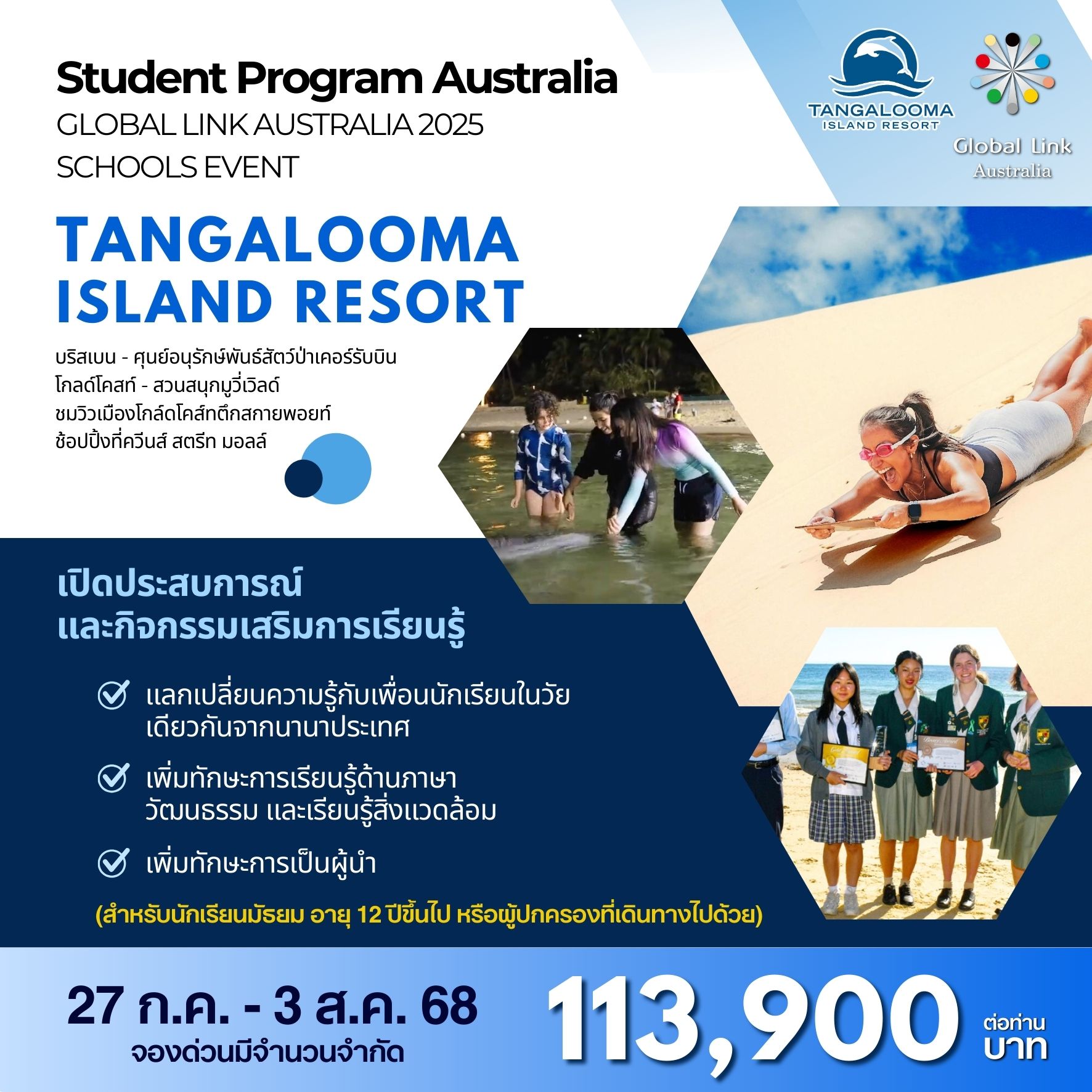 - ทางบริษัทฯจะทำ Invoice แจ้งเก็บยอดเงินมัดจำ ขั้นต่ำท่านละ 10,000-20,000 บาท (แต่ละโปรแกรมไม่เท่ากัน) ชำระหลังจากการจองภายใน 2 วัน
