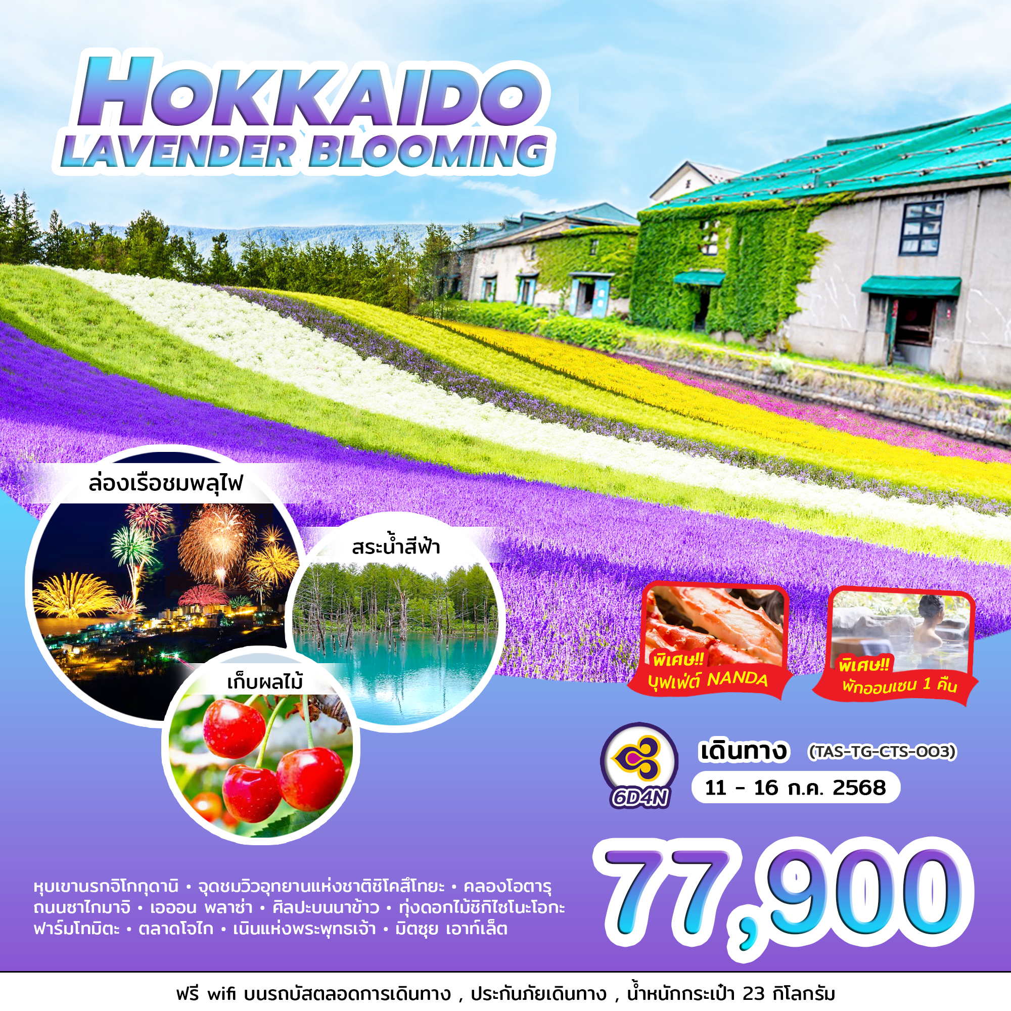 เที่ยวญี่ปุ่น ฮอกไกโด – หมู่บ้านเทพนิยาย นิงเกิลเทอเรส – AEON ASAHIKAWA เมืองบิเอะ – ลานสกีชิคิไซ พาโนราม่า – สวนสัตว์อาซาฮิยาม่า – สวนสาธารณะโอโดริ – ย่านซูซูกิโนะ DUTY FREE – อุทยานโมอาย – เนินแห่งพระพุทธเจ้า – คลองโอตารุ – พิพิธภัณฑ์กล่องดนตรี – นาฬิกาไอน้ำโบราณ – ย่านเก่าทานุกิโคจิ